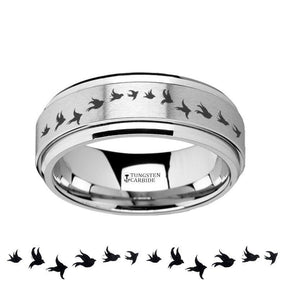 Spinning Engraved Flying Birds Tungsten Carbide Spinner Wedding Band - 8mm - 8mm / 5 / Tungsten Carbide is backordered and will ship as soon as it is back in stock.