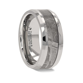 Celestial Meteorite Inlay Tungsten Carbide ring with Flat, beveled edges by Thorsten - 8mm