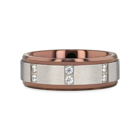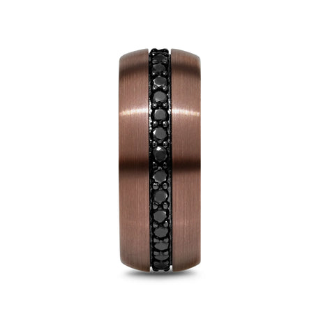 BEOWULF Raised Center Brushed Espresso Tungsten Carbide Wedding Band with Channel-Set Diamonds - 8mm
