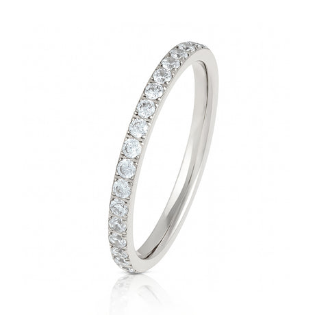Silver Titanium Ring full Eternity Cubic Zircon Diamonds 2mm