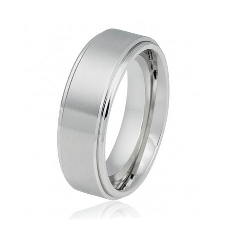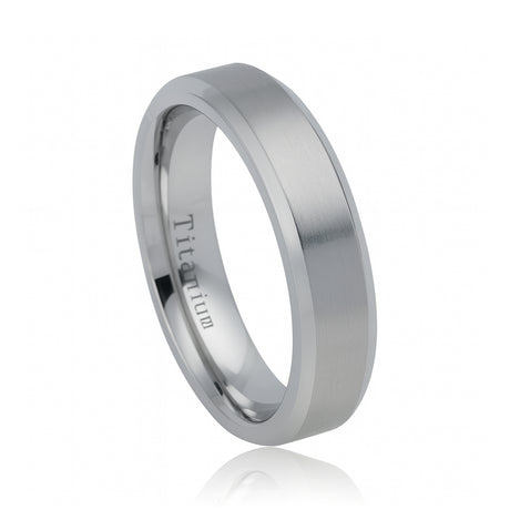 Men's Silver Titanium With Stepped Beveled Edges And Brushed Center - 9mm