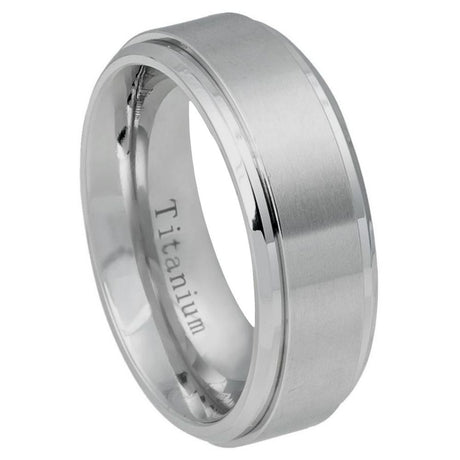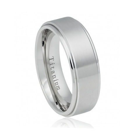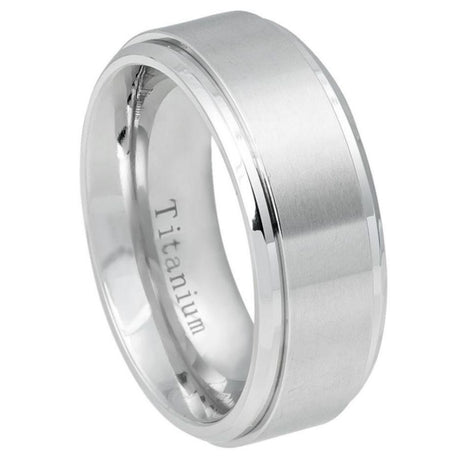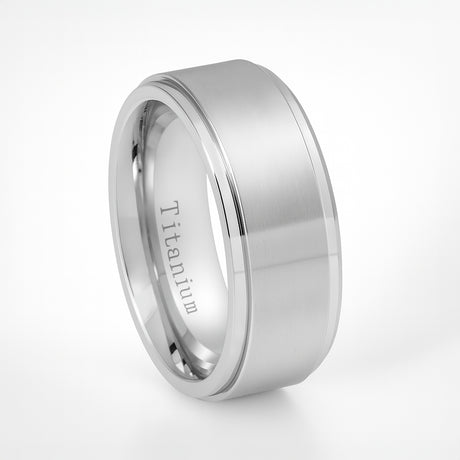 Men's Silver Titanium With Stepped Beveled Edges And Brushed Center - 8mm
