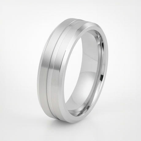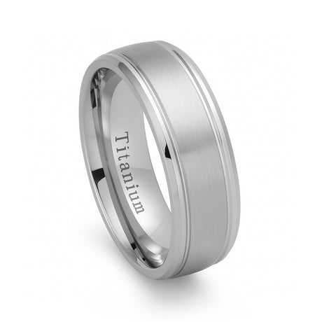 Silver Titanium Grooved Center Beveled Edged Ring - 7mm