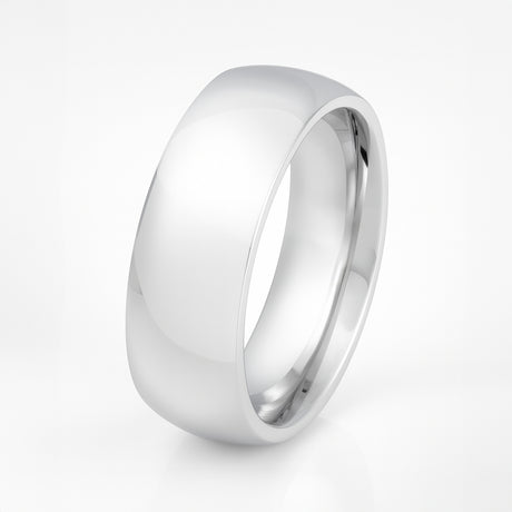 Men's Silver Titanium Wedding Band Polished Dome Ring - 7mm