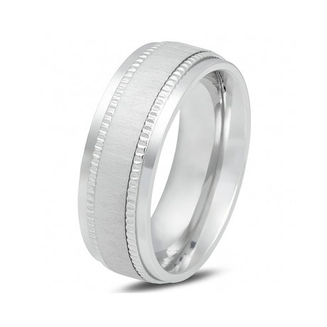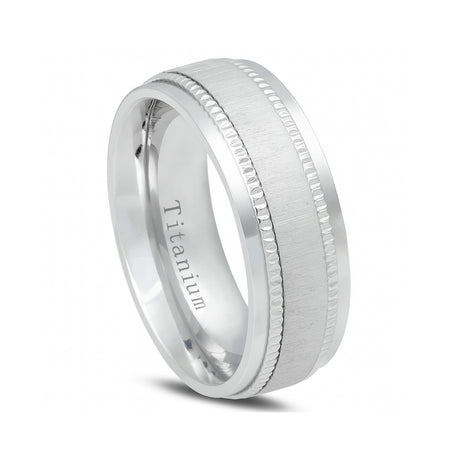 Men's Silver Titanium Ring With Milgrain Stepped Edges And Brushed Center - 8mm
