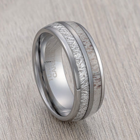 8mm - Tungsten Wedding Band, Antler Meteorite Inlay, Man & Women, Tungsten Ring