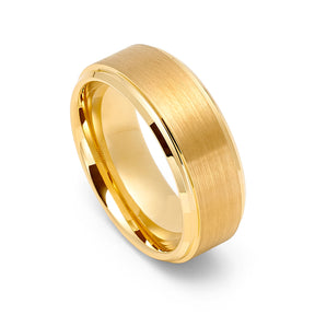 8mm - Yellow Gold Tungsten Carbide Wedding Band Stepped Edges Brush Center