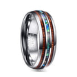 8mm - Hawaiian Koa Wood Tungsten Rings Dome Abalone Shell/Blue Center Wedding Band