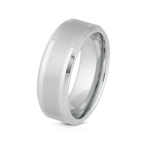 White Silver Platinum-Like Finish Tungsten Ring with Brushed Center and Polished Beveled Edges-8mm