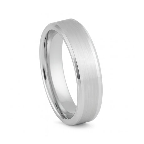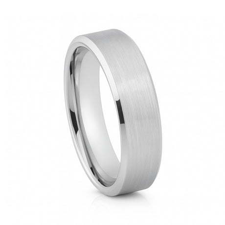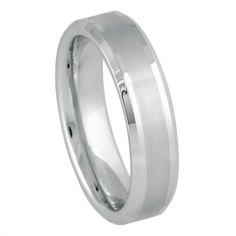 White Silver Platinum-Like Finish Tungsten Ring with Brushed Center and Polished Beveled Edges-6mm