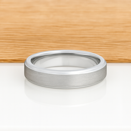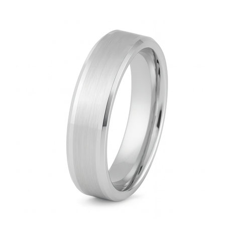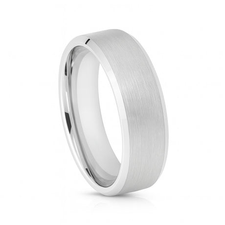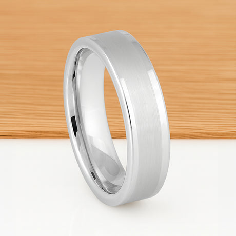 White Silver Platinum-Like Finish Tungsten Brushed Center Ring With Polished Edges - 6mm