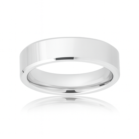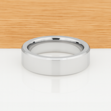 White Silver Platinum-Like Finish Tungsten Carbide Ring Polished Finish Beveled Edges - 6mm