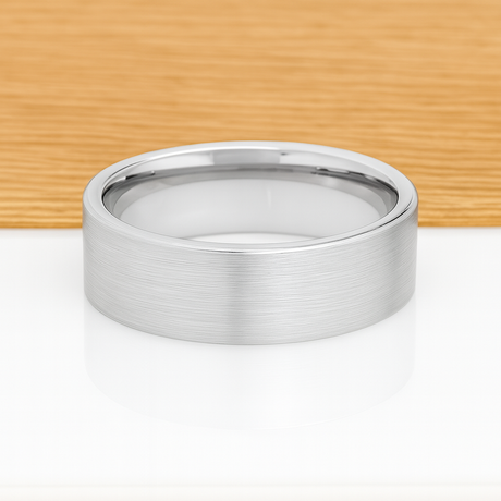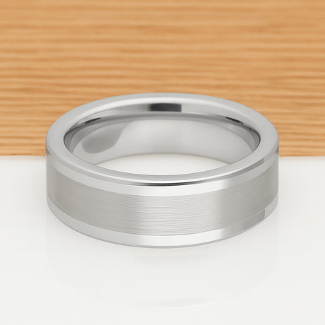 White Silver Platinum-Like Finish Tungsten Brushed Center Ring With Polished Edges - 8mm