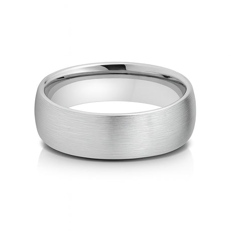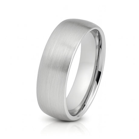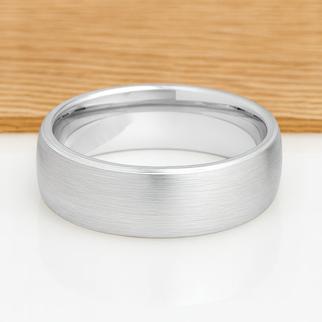 White Silver Platinum-Like FinishTungsten Brushed Center Ring Domed With Polished Edges - 8mm