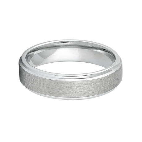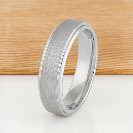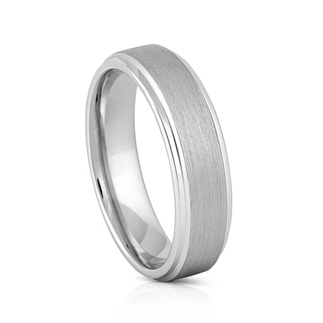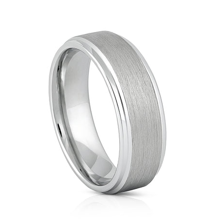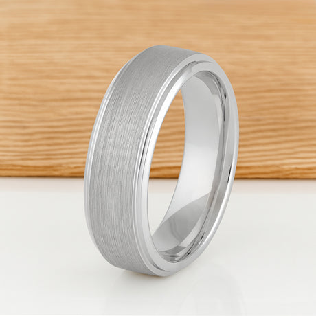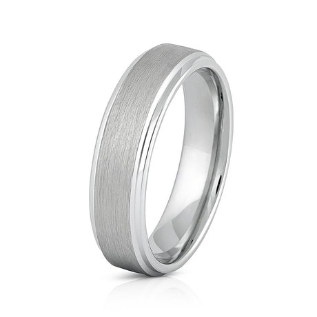 White Silver Platinum-Like Finish Tungsten Carbide Ring Stepped Edges And Brushed Center - 6mm