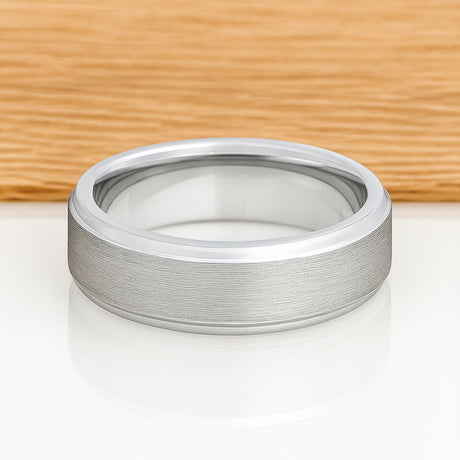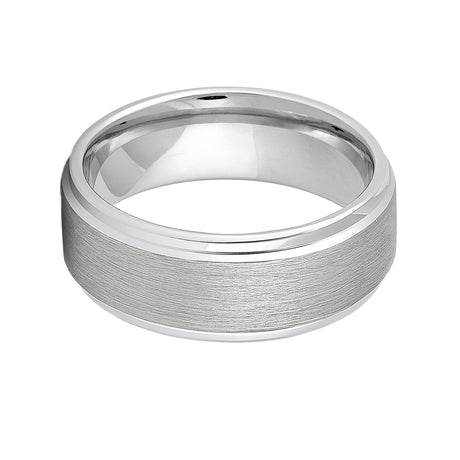 White Silver Platinum-Like FinishTungsten Carbide Ring Stepped Edges And Brushed Center - 8mm