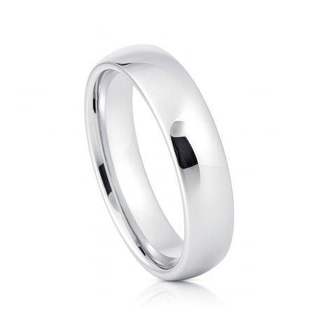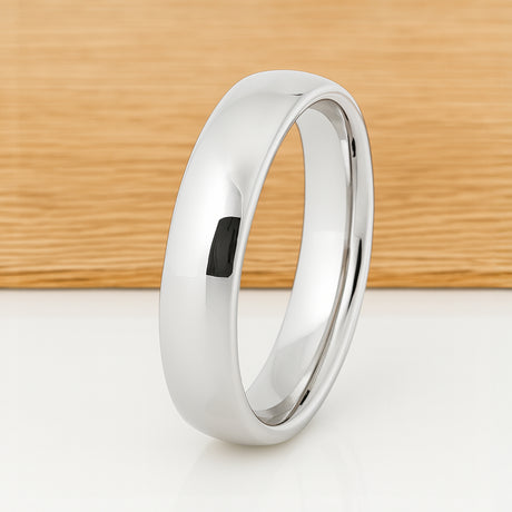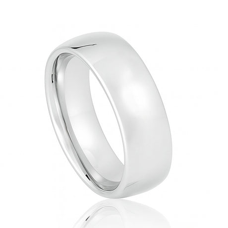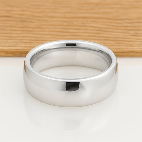 White Silver Platinum-Like Finish Tungsten Carbide Wedding Band Polished Dome Ring - 8mm