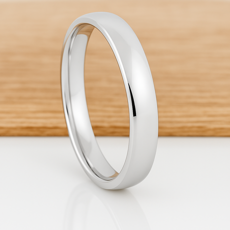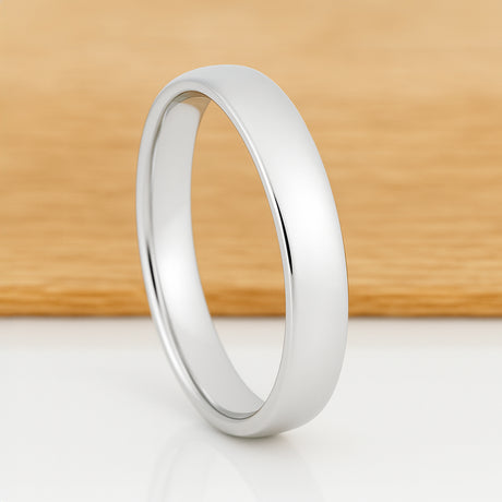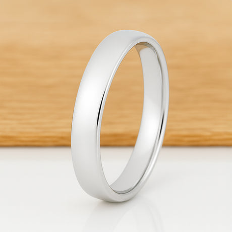 4MM - White Silver Platinum-Like Finish Tungsten Carbide Wedding Band Polished Dome Ring