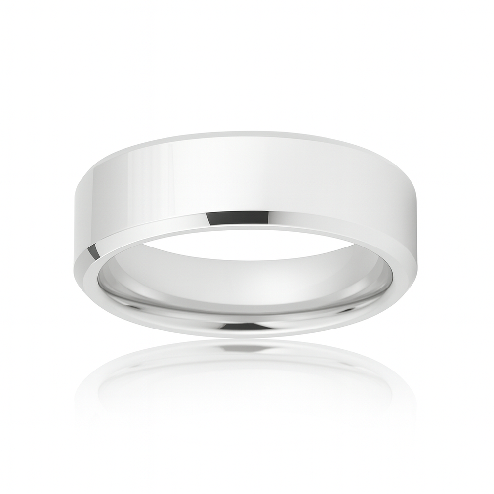 White Silver Platinum-Like Finish Tungsten Carbide Ring Polished Finish Beveled Edges - 8mm