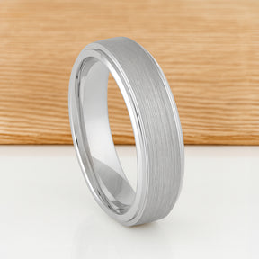 White Silver Platinum-Like Finish Tungsten Carbide Ring Stepped Edges And Brushed Center - 6mm