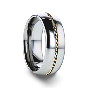 GOLDWYN Braided 14k Gold Inlay Domed Tungsten Ring - 6mm or 8mm