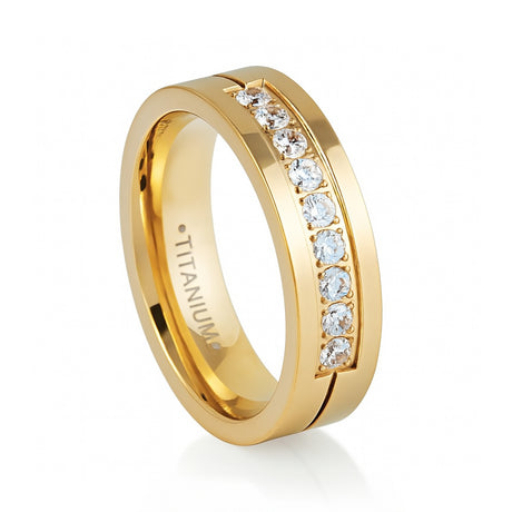 $215.22Unit price /UnavailableGold Titanium Wedding Band W/ 9 CZ Diamond Inlay High Polish 6mm