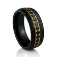 8mm - Black & Gold Tungsten Hammered Wedding Band, with Black Sapphires Ring