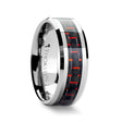 Rare black and red carbon fiber is inlaid into Tungsten Carbide to create this line of superior quality Comfort Fit Tungsten Rings by Thorsten Rings. This ring is a flat style with beveled edges and is available in 6 mm and 8 mm. Perfect for couples who would like a matching set!