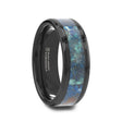 CELADON Black Ceramic Wedding Band, featuring a polished Chrysocolla inlay for a unique, elegant look. Experience the perfect blend of modern design and beauty.