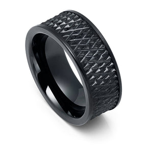 9mm Black Tungsten Carbide Ring W/ Parallelogram Design Center - 7 / Black / Tungsten Carbide is backordered and will ship as soon as it is back in stock.