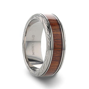 OHANA Koa Wood Inlaid Titanium Mens Wedding Ring with Intricate Edges - 6mm - 10mm