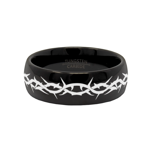 - Order your Black Thorn Crown Tungsten Carbide Ring today and carry a piece of timeless symbolism with you wherever you go.