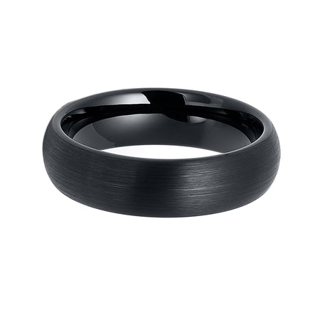 6mm Black Tungsten Carbide Wedding Band Brushed Finish Dome Shape Ring