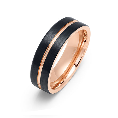 6mm - Tungsten Wedding Band Two-Tone Rose Gold & Black Center Groove