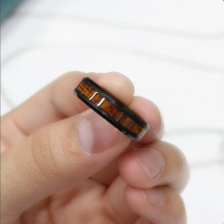 6mm Black Ceramic Wedding Ring with Koa Wood Inlay