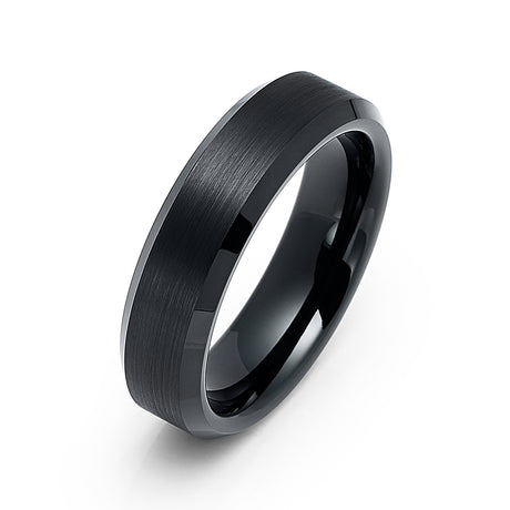 6mm Black Tungsten Carbide Wedding Ring with Brushed Center