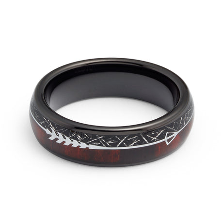 6mm Tungsten Carbide Meteorite Wedding Band, Koa Wood Ring, Arrow Ring