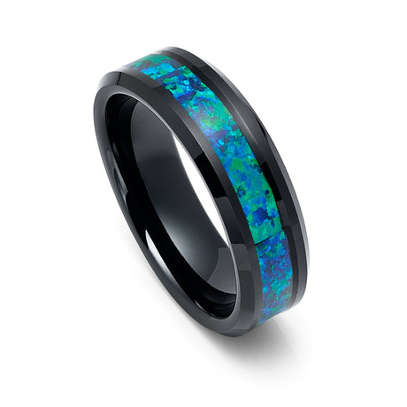6mm Tungsten Carbide Wedding Band W/ Emerald Green & Blue Opal Inlay
