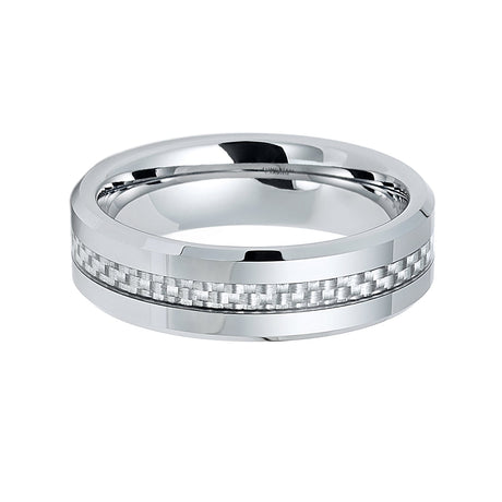 6mm Silver Tungsten Carbide wedding band W/ Gray Carbon Fiber Inlay Ring