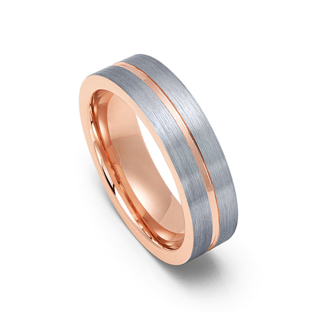 6mm Silver Tungsten Carbide Ring Brushed With Rose Gold Stepped Edges
