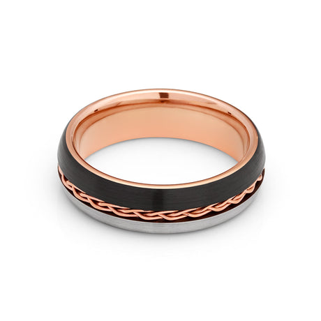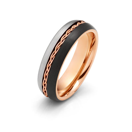 6mm Rose Gold Tungsten Carbide Ring Braid Ring Brushed Black & Gunmetal Center