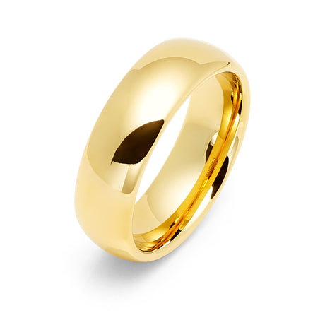 7mm - 14k Yellow Gold Tungsten Wedding Band, High Polish Dome Shape, Anniversary Ring