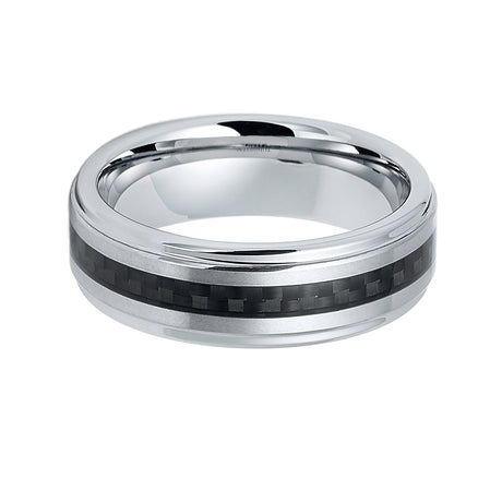 7mm Silver Tungsten Carbide wedding band W/ Black Carbon Fiber Ring