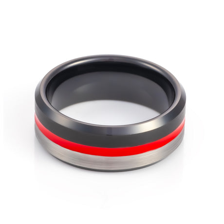 8mm - Men's Tungsten Carbide black ring half brushed center w/ red groove
