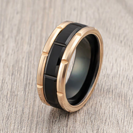 8mm - Men's Tungsten Wedding Ring, Rose Gold Tungsten Band, Black Tungsten Ring