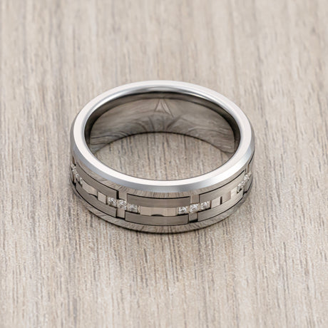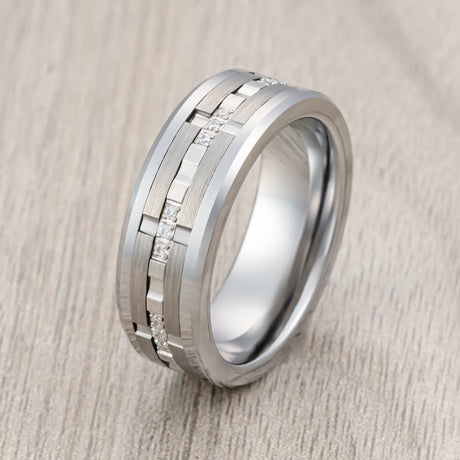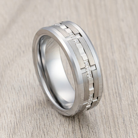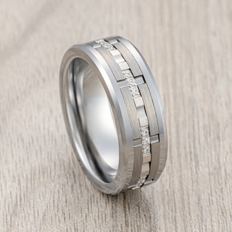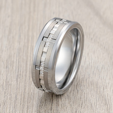 8mm - Men's Tungsten Wedding Band, CZ Diamond Ring, Comfort Fit Anniversary Ring