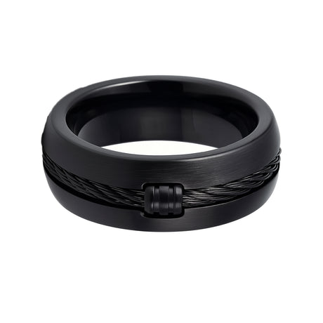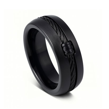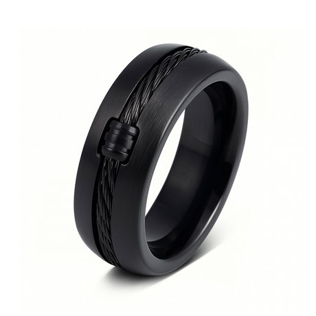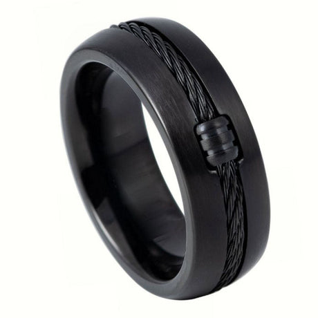 8mm - Mens Black Titanium Ring Single Center Locked Cable Inlay