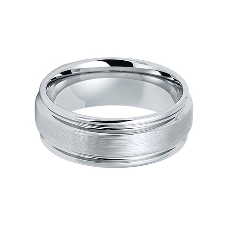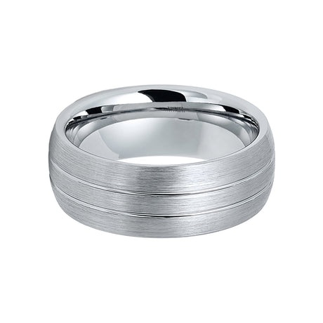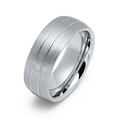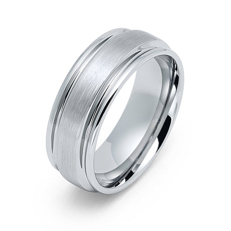 8mm - Men's Tungsten Wedding Band with Double Groove, Brushed Center
