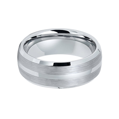 8mm - Men's Tungsten Carbide Ring W/ Brushed Sides, Polished Center,