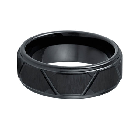 8mm - Tungsten Black Brushed Ring Trapezoids Stepped Edge Comfort Fit Wedding band